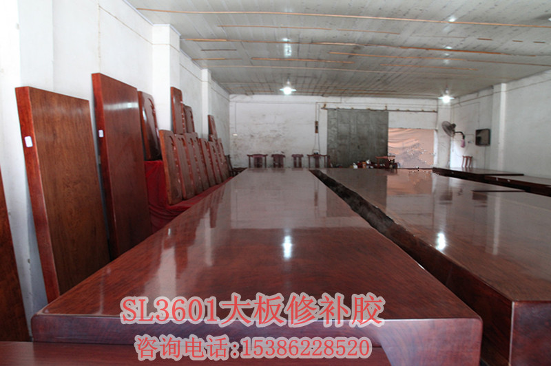 因為木材上面有的縫隙較小,所以要選用滲透力好的膠來修補它,但是現(xiàn)在有很多大板加工廠用的是502類似的水性膠,這種膠雖然固化時間短,但是耐老化情況不好,對于一顆成長了上百年歷史的原木來說要體現(xiàn)它的價值當然需要每一件都用好的材料來輔助它加工成為精品、藝術品,所以強烈給大家推薦SL3601透明裂縫膠這款膠顏色是完全透明的可以根據(jù)木材的顏色添加不同顏色的色粉;流動性非常好,特別適合細小裂縫的修補和灌注修補;