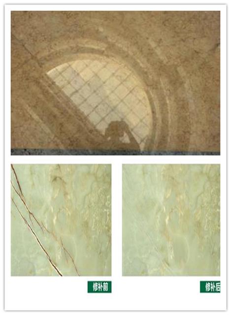 近丹東盧總接到一個(gè)酒店地板維護(hù)保養(yǎng)的工作,本以為是一件簡單的清潔打磨的工作,結(jié)果到現(xiàn)場一看,傻眼了!大理石的地面、臺階跟柱面,很多因?yàn)楸pB(yǎng)不好,大理石地面裂縫斷開,大理石臺階也斷裂了,怎么辦?不弄好一分沒賺還要賠,趕緊上網(wǎng)搜大理石裂縫修補(bǔ)膠,找到了株洲世林膠業(yè)的SL3214透明石材膠。一看資料這款膠主要用于臺面板的復(fù)邊粘接,也可用于石材的粘接和修補(bǔ),對貼花、拼花等具有很好的效果。和混凝土、金屬、木材、陶瓷及玻璃等均可粘接。1.固化速度快;2.和石材的附著力好;3.透明、光澤度較好、硬度高、適合淺色石、耐黃變室內(nèi)可達(dá)1年以上;4.粘度適中,不會(huì)到處流淌;5.操作方便; 6.耐磨、耐老化;7.有良好的耐候性、耐稀酸、耐稀堿、耐水;8.無毒,環(huán)保。