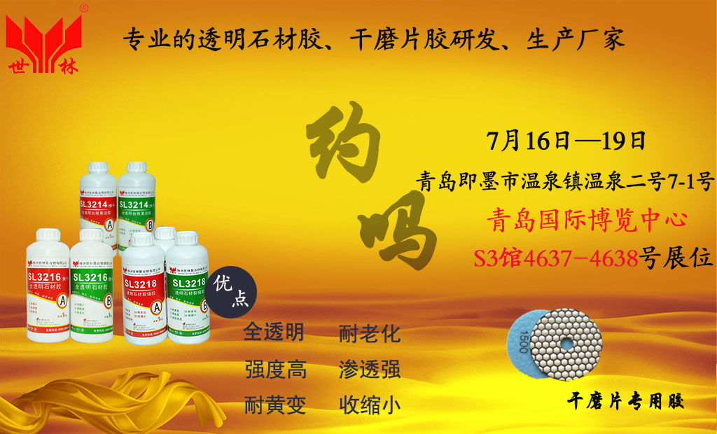 世林膠業(yè)參加了2016年青島石材展會,展會時間:2016年7月16-7月19日,展會地點:青島國際博覽中心S3館4637-4638號展位。