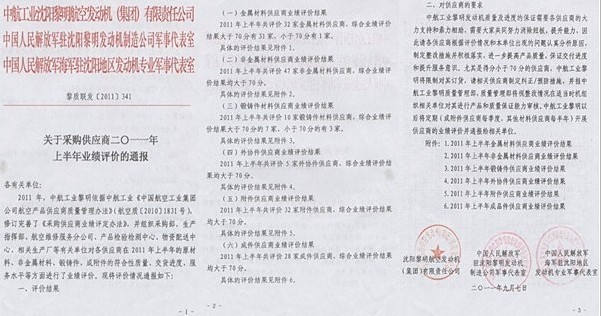 10月17日一早, 中航工業(yè)沈陽(yáng)黎明航空發(fā)動(dòng)機(jī)(集團(tuán))有限公司發(fā)來(lái)賀電:祝賀世林膠業(yè)在2011年上半年非金屬材料供應(yīng)商綜合評(píng)價(jià)結(jié)果中各項(xiàng)指標(biāo)均為滿分!