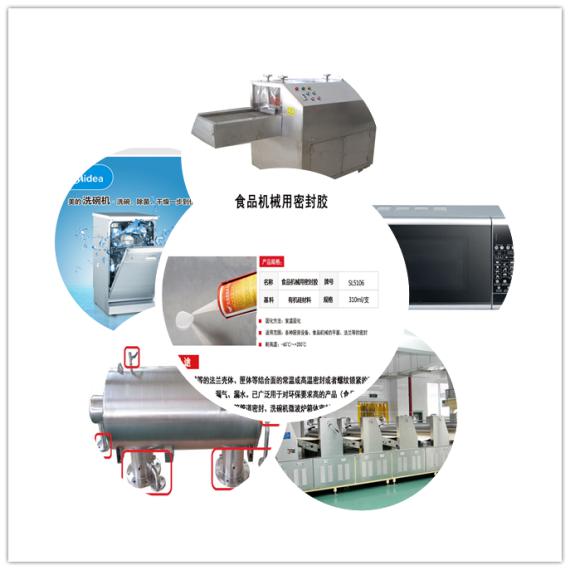 株洲世林膠業(yè)生產(chǎn)的SL5106食品級(jí)耐高溫密封膠,是一種單組份食品機(jī)械用密封墊,可以用于各種食品機(jī)械的平面和法蘭等的密封,它具有優(yōu)良的密封性,長(zhǎng)期耐溫可以達(dá)到250度,短時(shí)可達(dá)+300℃。用在產(chǎn)品的間隙處,完全解決了耐高溫,防水,防塵,耐候性強(qiáng),可拆卸等問題。美的洗碗機(jī)上也是用的這款膠水做密封。